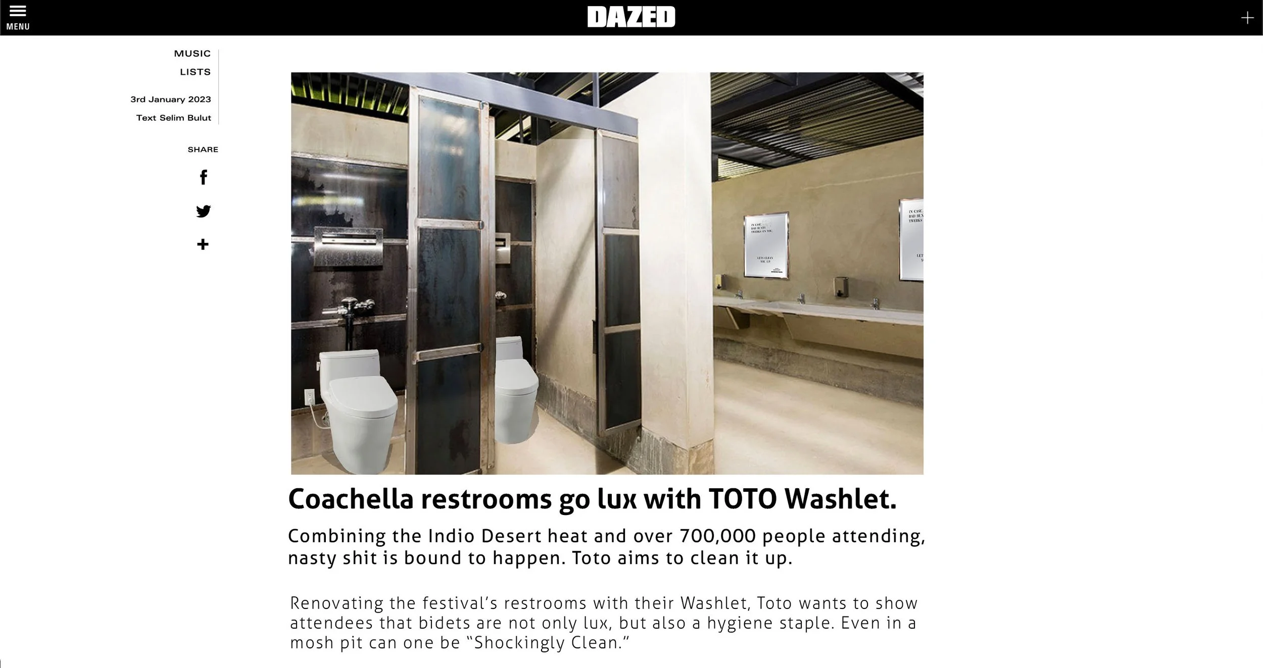By putting Washlets in Coachella's restrooms and mirrors with decals, Toto shows festival goers they can be Shockingly Clean in the heat of Palm Springs.